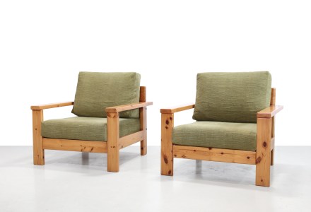 Set van twee Italiaanse grenen design fauteuils uit de jaren 70