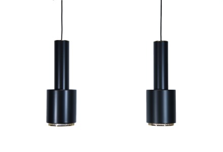 Set van 2 Alvar Aalto A110 Hand Grenade hanglampen in zwart met messing detail