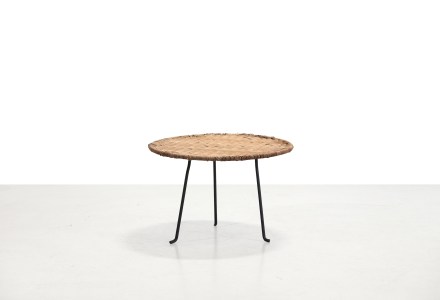 Ronde rieten bijzettafel in de stijl van Raoul Guys