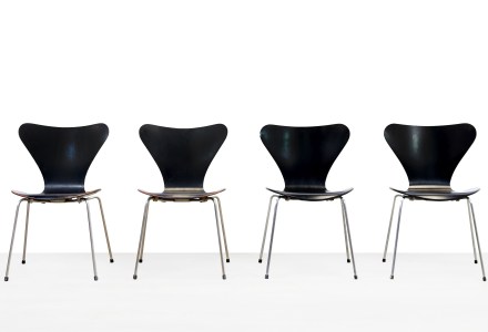 Set zwarte Arne Jacobsen vlinderstoelen model 3107