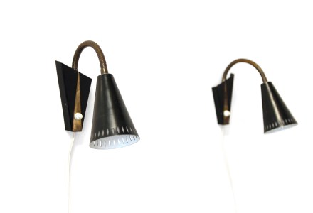 Twee vintage zwarte stilnovo stijl wandlampjes
