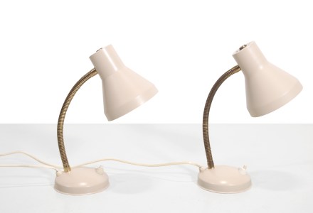Set van twee messing tafellampen van Max Sauze model Ganymede