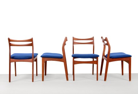 Vier Deens design teak eetkamerstoelen van Erik Buch
