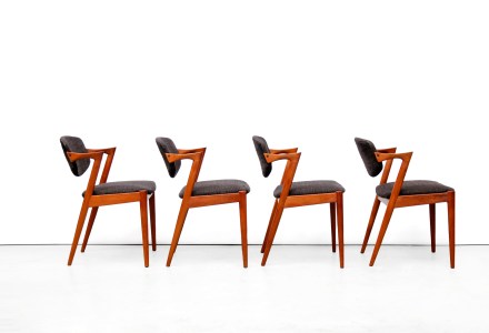Set van vier Deense Schonning en Elgaard eetkamerstoelen in Teak