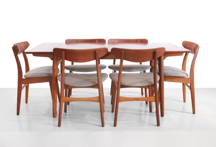 Hans Wegner set van 6 CH30 stoelen met een verlengbare AT310 tafel