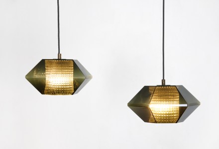 Groen glazen hanglamp met kristal door Carl Fagerlund voor Orrefors