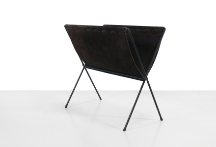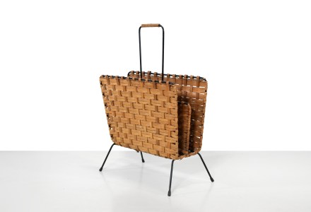 Deense modernist Eik met leer magazine rack