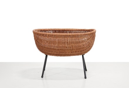 Vintage rotan en metaal tijdschriftenhouder