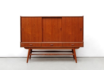 Vintage turquoise WeBe design fauteuil van Louis van Teeffelen in teakhout