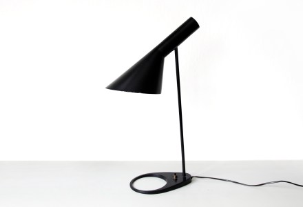 Vintage zwarte Arne Jacobsen ‘AJ visor’ tafellamp