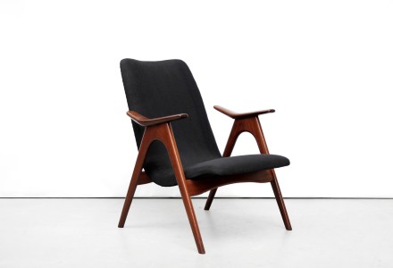 Vintage turquoise WeBe design fauteuil van Louis van Teeffelen in teakhout