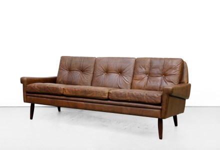 Bruin leren Deens design tweezits bank van Svend Skipper