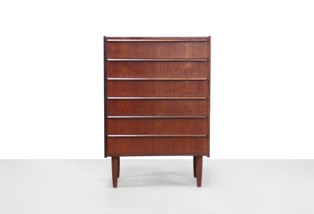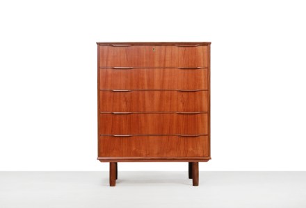 Set van twee Teak nachtkastjes met messing ophangbeugels