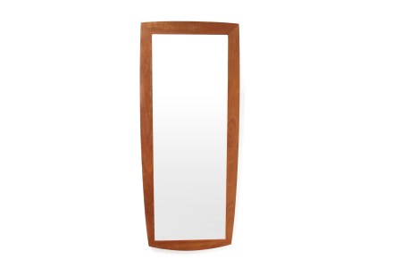Asymmetrische Deense teakhouten midcentury modern design spiegel