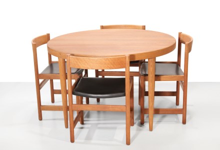 Deense ronde eetkamertafel van Kai Kristiansen in eikenhout