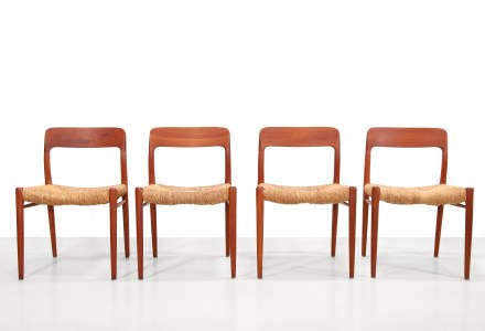 Set van vier Niels O. Moller model 75 stoelen met rieten zitting