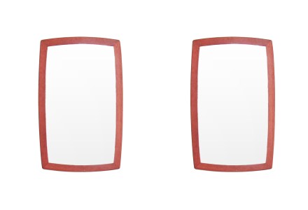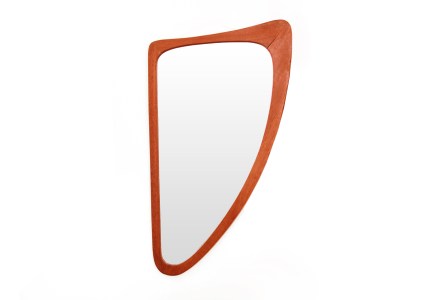 Asymmetrische Deense teakhouten midcentury modern design spiegel